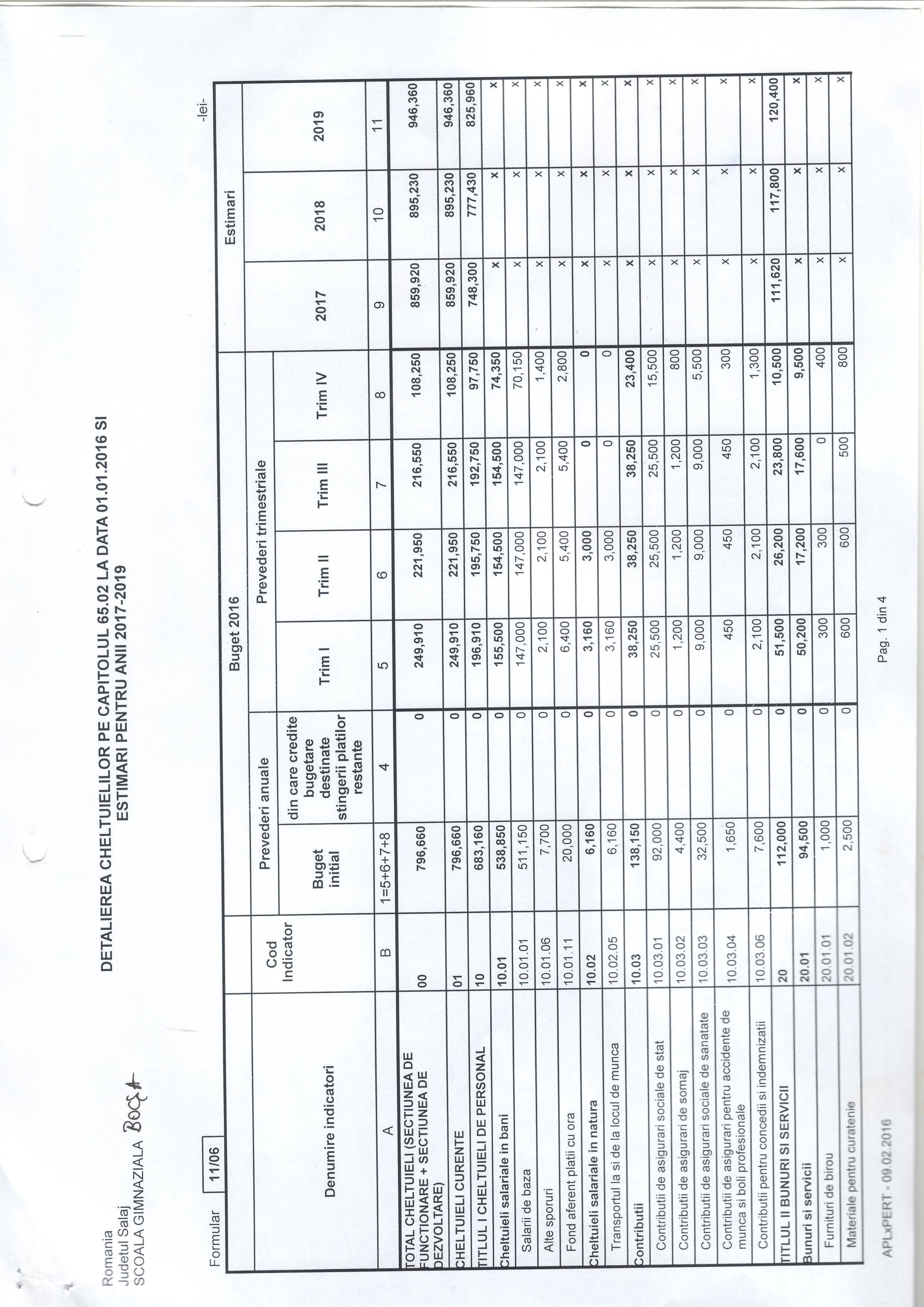 In conformitate cu prevederile articolului 104 și 105 din Legea Educației Naționale privind finanțarea unităților de învățământ și a Hotărârii Guvernului nr. 993/2015 pentru modificarea Hotărârii Guvernului nr. 72/2013 privind aprobarea normelor metodologice pentru determinarea costului standard per elev/preșcolar și stabilirea finanțării de bază a unităților de învățământ preuniversitar de stat, care se asigură din bugetul de stat, din sume defalcate din T.V.A. prin bugetele locale, pe baza costulul standard per elev/preșcolar se aduce la cunoștintă publică documentul “Bugetul aprobat pentru anul 2016” al Școlii Gimnaziale „ Simion Bărnuțiu” Bocșa prin afișarea la sediul instituției și expunere pe site-ul www.școalabocșa.ro.